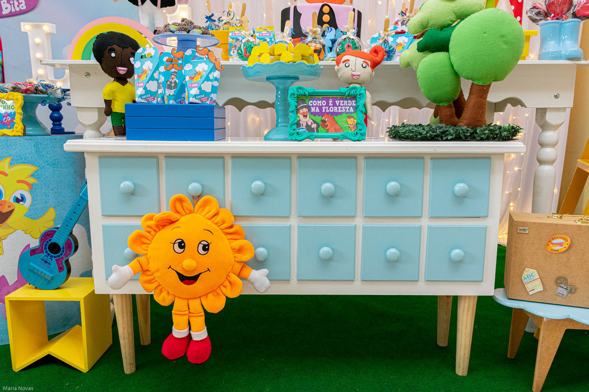 decoração Mundo Bita SDBuffet decoração de festa personagens arco-íris catavento salão de festas aniversário festa condomínio festa personalizada